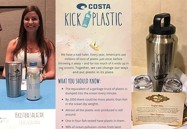 This July at the International Convention of Allied Sporting Trades (ICAST) Kristen Salazar, owner and director of marketing at Casa Vieja, joined Costa as a guest speaker for the launch of their Kick Plastic Guide & Outfitter Program. During the talk, Kristen shared with the audience how Casa Vieja Lodge has been eliminating plastic bottles at the lodge and their future endeavors. This upcoming season the Lodge will implement water dispensers throughout the grounds and provide clients with refillable YETI 26oz Ramblers to use during their stay.