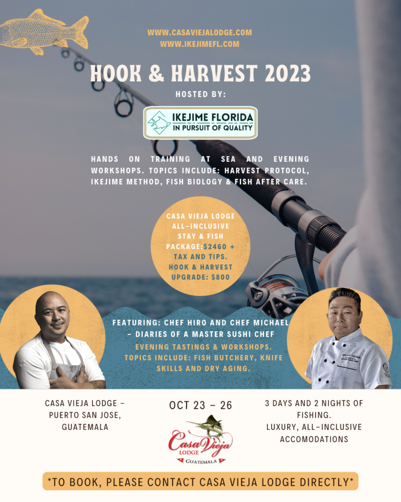 Hosted by Ike Jime Florida, with demo’s taught by amazing sushi chefs, this trip aims to educate our anglers in whole fish utilization and fabrication.
