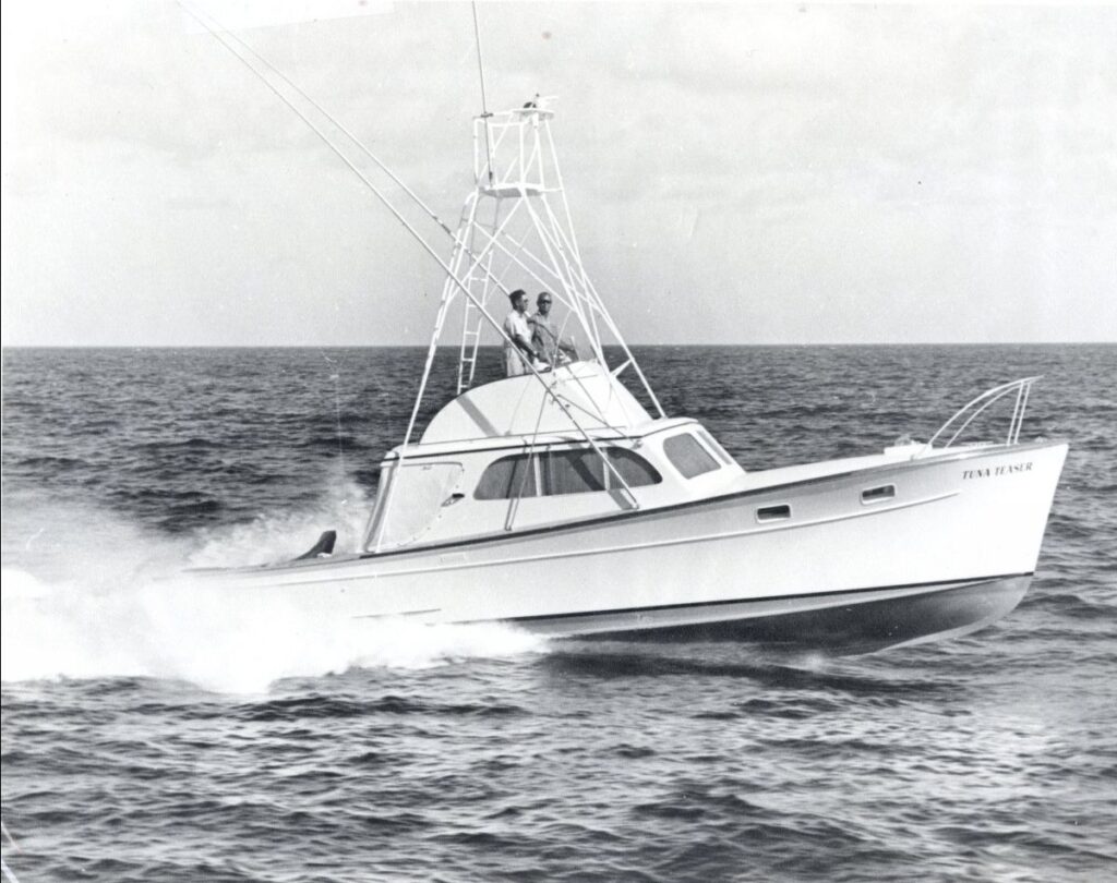 A 37-ft Merritt made in 1961 by Buddy Merritt himself, this vessel was the 8th hull constructed in the Merritt boatyard. He dubbed this 37′ “the perfect fishing boat,” and crafted her with one purpose in mind…to raise and catch fish.